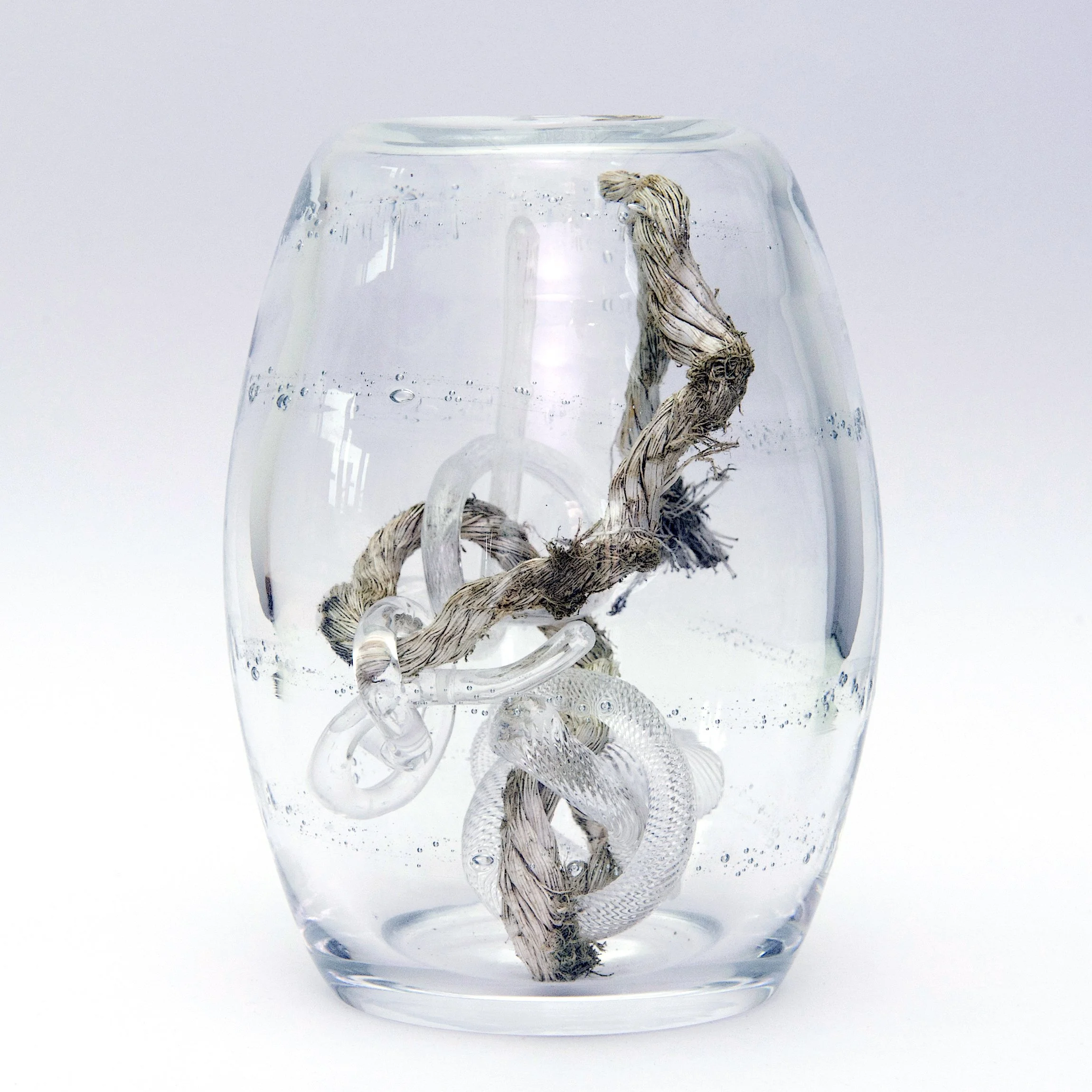 This collection comprises 8 mould blown vessels that contain individually donated objects from each Artistic Director that North Lands has seen during the 20 year period.